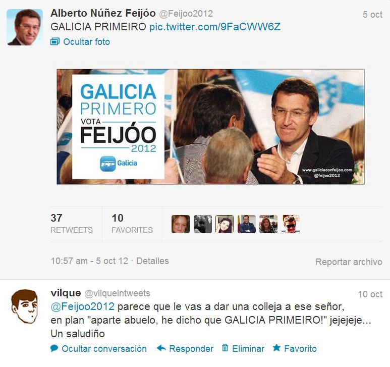 Y por último, observando que el actual Presidente gallego se presenta a la reelección con una imagen de dudoso significado, no he querido perder la oportunidad de comentárselo: