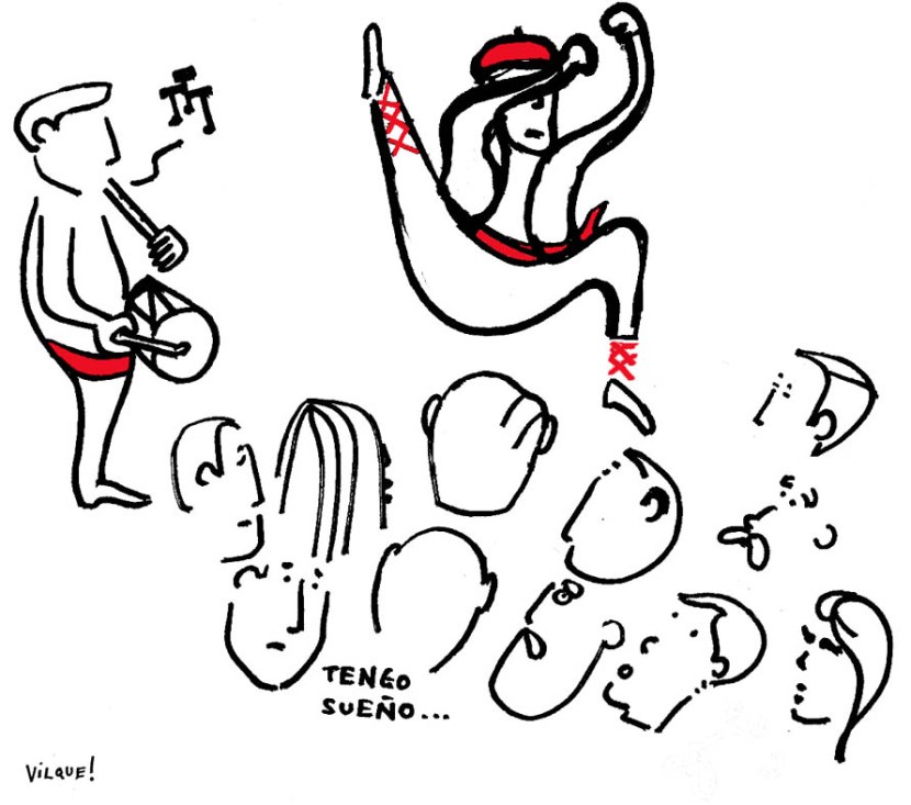 Tras arduas negociaciones, el comité de empresa logró que un dantzari recibiese a los trabajadores cada mañana.