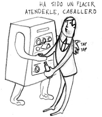 Una máquina expendedora de bebidas a la que ponen brazos y piernas. Ya le han puesto voz, ¿por qué no brazos también?