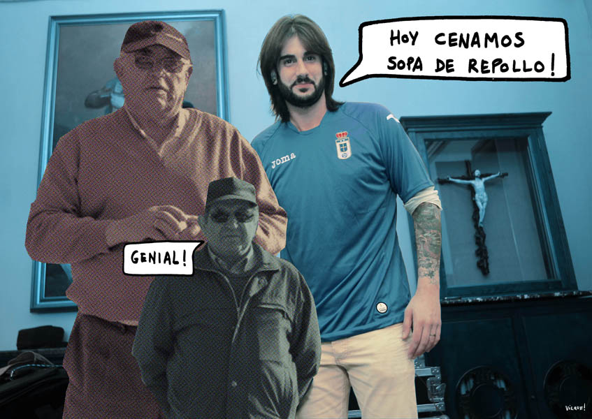 Vaya sorpresa. ¿Sabías que en su despedida de soltero el Caudillo y sus colegas fueron por ahí a hacer el gamba vestidos de torero? Él al final se quitó el traje porque le daba calor, pero los demás no se arredraron. Fue un sábado en Gijón, y conocieron a unas de Pontevedra que también estaban de despedida e iban de fans de Eurovisión, jajajaja, vaya risas: «la guayominí, dé puan!». ¿Y el domingo comieron en un Tierra Astur? Claro. Mirad qué foto sacaron los de tilllate abrasándoles la cara con el flash: